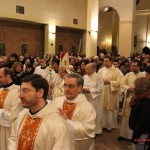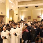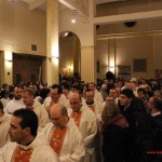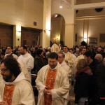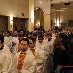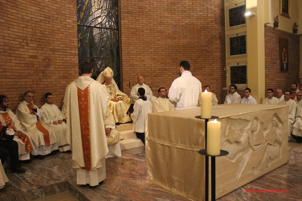 DIOCESI – Ore 21.00 12 gennaio, sabato sera, le campane della Chiesa dell’Annunziata suonano, suonano a raccolta, c’è qualcosa da celebrare insieme. Un’ordinazione diaconale. La chiesa si riempie di bambini, di giovani, di tante persone che vogliono con – dividere, anzi moltiplicare con Matteo la sua emozione e gioia del suo SI al diaconato. Il salone parrocchiale è anch’esso pieno di dolcetti e torte, pronte per festeggiare. La tavola è imbandita. Anzi le Tavole sono imbandite, il vescovo Gervasio per l’imposizione delle mani consacra Matteo diacono perché serva all’altare nella santa Chiesa, e percorra la via della carità come compimento di questa consacrazione.