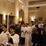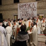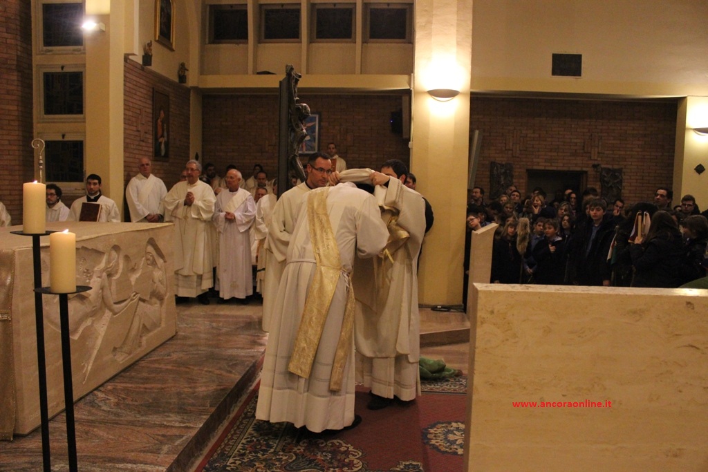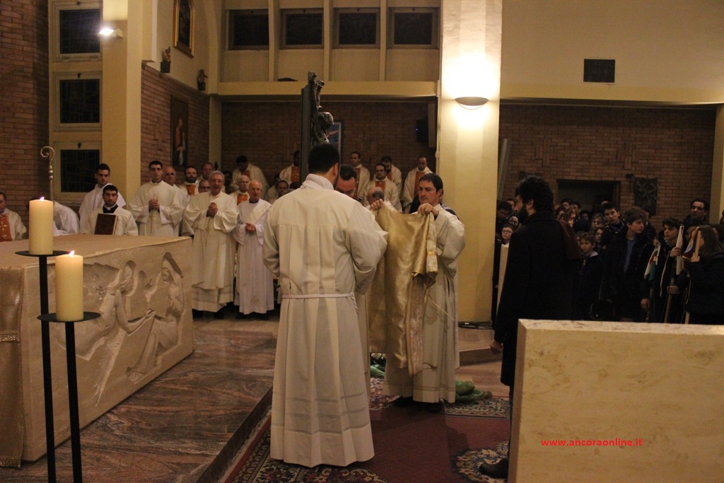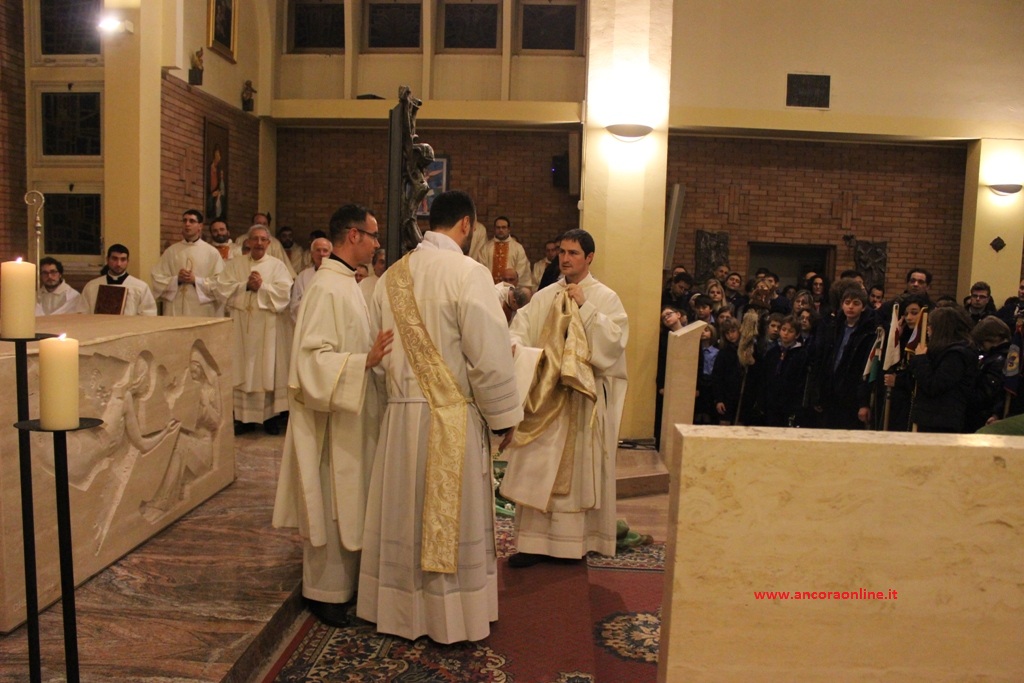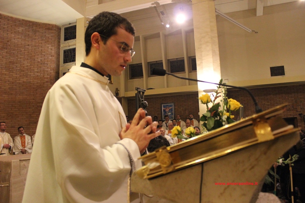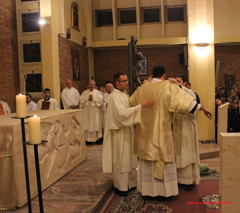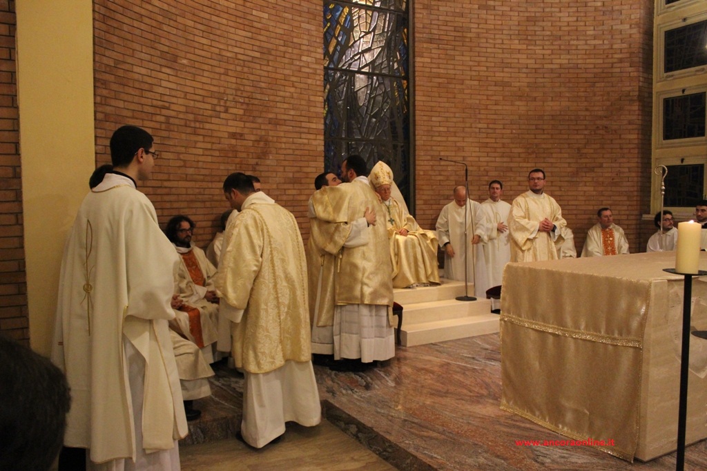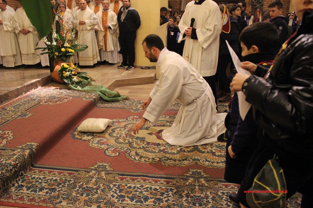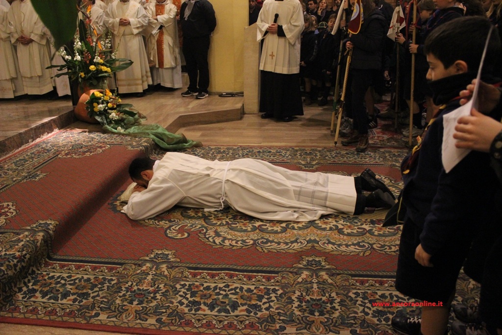 Nel giorno del Battesimo del Signore, accompagnato dalla sua famiglia, Matteo visibilmente emozionato riceve l’abbraccio di tanti che vi si stringono intorno in una celebrazione partecipata, semplice e accogliente. Ci sono le comunità della parrocchia di origine a Grottammare, di Regina Pacis dove svolge il suo servizio, la comunità dell’Annunziata dove ha maturato la sua scelta, i gruppi scout con cui ha camminato insieme, insieme a tanti amici e ai compagni del seminario, e tanti sacerdoti. Il dono di un nuovo diacono e il cammino intrapreso da Matteo sono un dono che come ricordava in questi giorni di preparazione, è un dono che subito viene ridonato alla Chiesa.