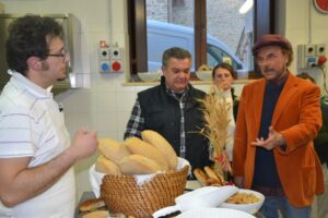 L’affascinante viaggio è partito dalle Aziende Di Buò di Monsampolo del Tronto, dove sono state analizzate tutte le caratteristiche della vacca marchigiana, razza bovina tipica della nostra regione. Ci si è trasferiti poi allo Stabilimento Trivelli di Roccafluvione, con un gustoso angolo dedicato a funghi e tartufi. Gran finale al Forno di Collina di Emanuele Michilli a Montemonaco (nella foto), dove si è parlato di pane, grano e di produzione di biscotti biologici.