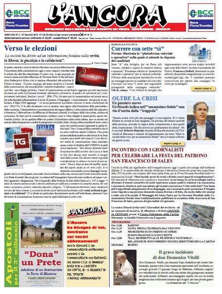 DIOCESI – In questo numero una nuova riflessione su come prepararsi alle elezioni tenendo conto i dettami della Dottrina Sociale della Chiesa ed altri suggerimenti in merito allo stesso avvenimento e un pensiero nuovo riguardante la crisi. Si possono leggere “La voce della SLA”, la via dei Presepi ed il calendario delle Cresime.