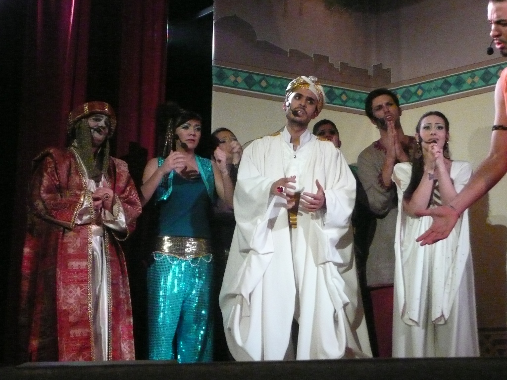La giovane e affiatata compagnia teatrale ha portato in scena il musical “Le Notti d’Oriente”; la favola di Aladino e della lampada magica, pensata e sceneggiata dalla regista della compagnia, Ilenia Ameli, che ha offerto scene veramente esilaranti, che hanno strappato risate a crepapelle tra il pubblico, per l’interpretazione dei protagonisti, da Aladino al fidato amico, compagno di avventura, a Jasmine, al singolarissimo Genio, e a tutti gli altri personaggi della fiaba. In conclusione, gli attori hanno suscitato applausi a scena aperta e i complimenti sono arrivati anche da don Guido, vice parroco della chiesa Cristo Re.