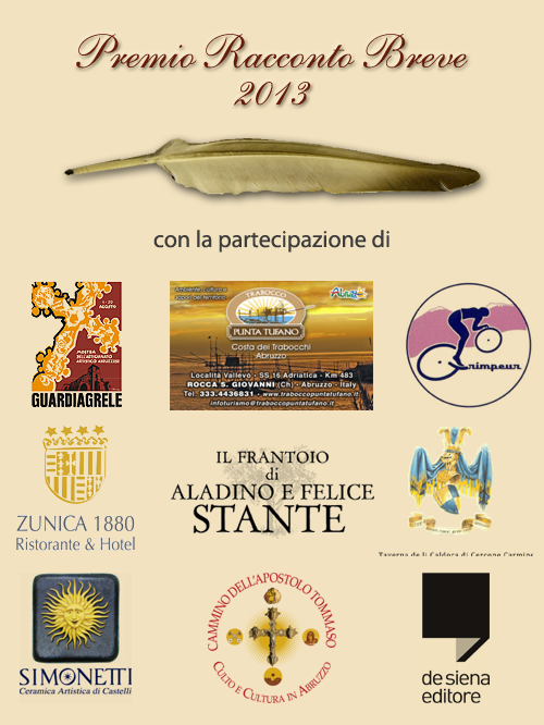 PREMIO SPECIALE. L’editore de Siena di Pescara, media partner della manifestazione,pubblicherà in un volume e/o nel proprio sito, previa liberatoria gratuita degli autori, i migliori racconti classificati.