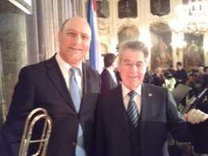 Al termine del concerto, Fontana ha ricevuto i complimenti del presidente austriaco Heinz Fischer (nella foto).