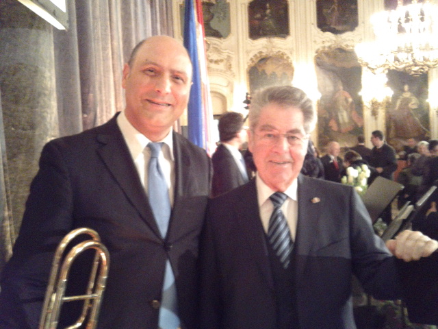 Al termine del concerto, Fontana ha ricevuto i complimenti del presidente austriaco Heinz Fischer (nella foto).