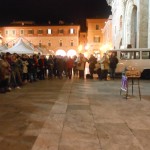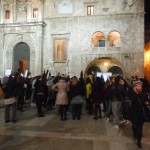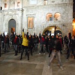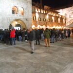 Il 14 febbraio, oltre un centinaio di donne nella splendida Piazza del Popolo, Ascoli Piceno, hanno dato il proprio contributo alla manifestazione planetaria del One Billion Rising. Le donne si sono ritrovate intorno alle 18:30 per iniziare la manifestazione durante la quale, dopo la visione di un mini film sull’argomento, è stato letto il testo Rising, scritto appositamente da Eve Ensler; le parole hanno colpito e hanno fatto riflettere sulla condizione della donna nel mondo, ed è stato per fermare la tragica e numerosa sequenza di morte per mano della violenza maschile che mogli, madri e figlie hanno ballato una coreografia sulla canzone “Break the chain”, nel cui testo la frase “This is my body, my body’s holy, No more excuses, no more abuses“, e cioè “questo è il mio corpo, il mio corpo è sacro, mai più scuse, mai più abusi“, rimarca l’urgenza di ridefinire la sacralità del corpo di ogni donna, di liberarlo per sempre da ogni forma di violenza. Le danzatrici improvvisate se la sono cavata egregiamente e al termine della danza hanno concesso con molto entusiasmo il bis. Nel corso della manifestazione molte partecipanti hanno più volte acceso e alzato al cielo simultaneamente una torcia per illuminare tutti sulla piaga della violenza sulle donne, sperando di poter formare una coscienza dalla quale partire per un percorso, certamente in salita, di recupero della dignità della donna nella sua interezza, anima e corpo.