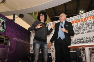 MILANO – “Sono qui di mia spontanea volontà per testimoniare l’amore profondo che nutro per questa regione che conosco benissimo e da lunga data. Una regione che considero tra le più affascinanti, più ricche di bellezze d’Italia. Se potrò far conoscere meglio questa regione unica nella sua pluralità e complessità sarò felice.” Così Pippo Baudo, di fronte alla folla che ha letteralmente invaso lo stand delle Marche e lo ha inseguito alla sua uscita dopo circa un’ora e mezzo, durante la quale ha dialogato con il famoso musicista ascolano Giovanni Allevi che lo stesso Baudo ha definito “una gloria non solo marchigiana ma nazionale.”