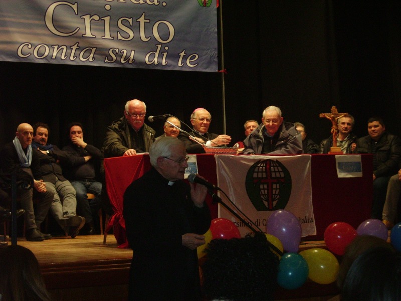 Nel Suo intervento di domenica scorsa, rivolto ai numerosi presenti in sala, dopo un doveroso pensiero rivolto al Papa ed alla sofferta decisione delle Sue dimissioni e dopo aver ascoltato le testimonianze dei partecipanti all’89° corso uomini, ha manifestato sincera commozione per quanto ascoltato: le emozioni provate davanti al Tabernacolo; l’amicizia sincera e fraterna sorta fra persone che alcuni giorni prima neanche si conoscevano; alla testimonianza di Mario che, nella sua semplicità ed autenticità, ha raccontato: ”nella mia vita ho conosciuto l’amore di Cristo attraverso la sofferenza, in questi tre giorni, invece, ho riscoperto il Suo amore nella gioia”; Marco, invece, candidamente riconosce che la sua chiamata al corso l’ha voluta Cristo per fargli sapere quanto sia grande il Suo amore per lui. Ilario, che aveva già vissuto l’esperienza dei tre giorni, chiamato a manifestare le sue vivenze, ammetteva di essere andato al corso con molta preoccupazione, ma si e subito tranquillizzato perché si è accorto che lo Spirito Santo e le numerose preghiere ed i messaggi d’incoraggiamento di fratelli di ogni parte del mondo sono state ventate che hanno gonfiato la vela e spinta la barca sulla quale era salito con tutti gli amici dell’89 vero un porto sicuro.