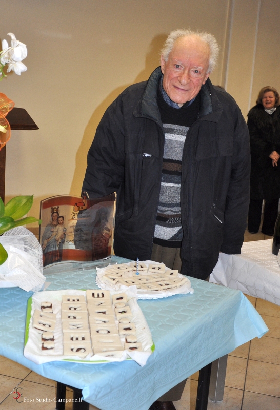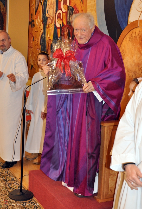 Al termine della funzione, la consegna di una targa ricordo che gli attribuisce il titolo di “nonno onorario della Comunità parrocchiale”.