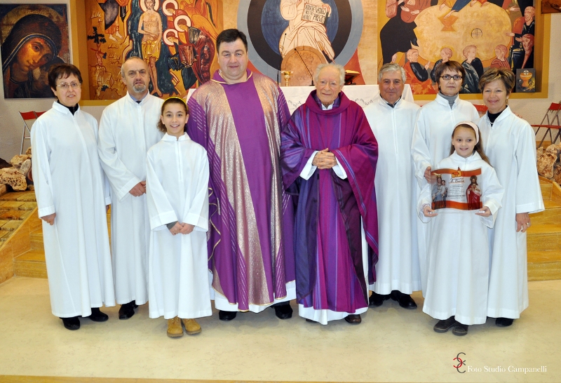Tanti i parrocchiani che hanno partecipato alla funzione religiosa, festeggiando il “nonno” onorario di questa comunità parrocchiale. Una bella cerimonia resa ancor più tale dal battesimo e dal repertorio di canti scelto dal coro parrocchiale diretto da Sonia Costantini e Luana Liodori