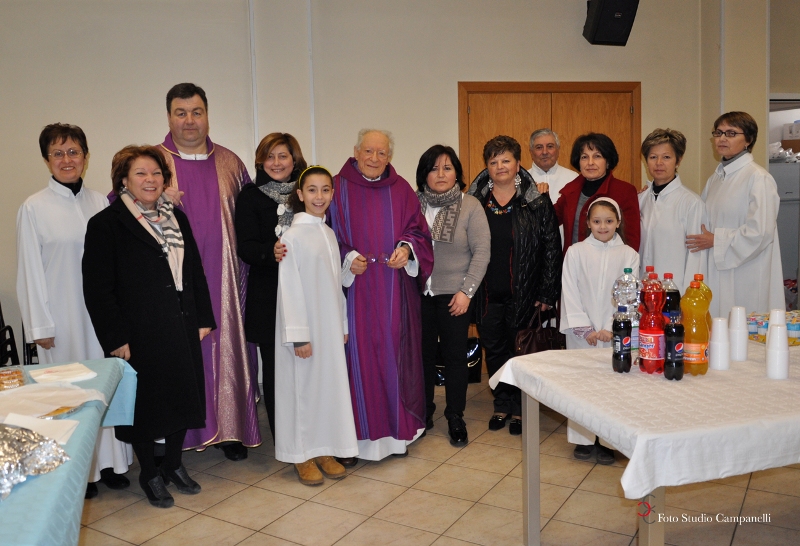 Tanti i parrocchiani che hanno partecipato alla funzione religiosa, festeggiando il “nonno” onorario di questa comunità parrocchiale. Una bella cerimonia resa ancor più tale dal battesimo e dal repertorio di canti scelto dal coro parrocchiale diretto da Sonia Costantini e Luana Liodori