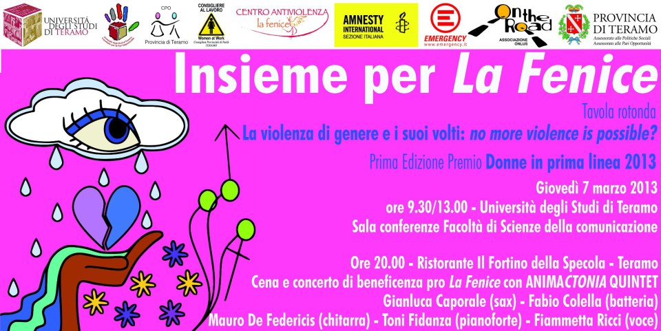 Giovedì 7 Marzo dalle 9,30 alle 13 presso la Sala Conferenze della Facoltà di Scienze della Comunicazione dell’Università di Teramo è prevista una tavola rotonda sul tema della violenza di genere dal titolo “La violenza di genere e i suoi volti: no more violence is possible?”, una riflessione sui diritti negati alle donne, che ha l’obiettivo di sensibilizzare l’opinione pubblica sul crescente fenomeno della violenza di genere. Interverranno il Presidente CPO di ateneo, Fiammetta Ricci, il Rettore dell’Università di Teramo, Luciano D’Amico, il presidente della Provincia, Valter Catarra, la Consigliera di parità, Anna Pompili, la Consigliera CPO provinciale, Desirèe Del Giovine e il rappresentante degli studenti dell’Università degli Studi di Teramo, Cristian Carinelli. Al dibattito parteciperanno anche Patrizia Di Berardino (On The Road), Annalisa Zanutti (Amnesty International), Maura Morgigni (Emergency) e Cristina di Baldassarre (Centro Antiviolenza “La Fenice”); il Sostituto Procuratore del Tribunale di Teramo, Laura Colica e il Questore di Teramo, Amalia Di Rocco, nonché il Capo Area Trattamentale della Casa Circondariale di Teramo, Elisabetta Santolamazza e Annacarla Valeriano, Assegnista di Storia Contemporanea all’Università di Teramo. Modera Antimo Amore giornalista Rai.