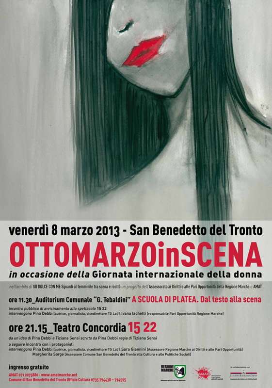 Al termine della rappresentazione è previsto un incontro con i protagonisti dello spettacolo al quale interverranno anche Pina Debbi (autrice, giornalista, vicedirettore TG La7), Sara Giannini (Assessore Regione Marche ai Diritti e alle Pari Opportunità) e Margherita Sorge (Assessore Comune San Benedetto del Tronto alla Cultura e alle Politiche Sociali).