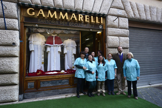 La nostra “Ditta Annibale Gammarelli” è una sartoria ecclesiastica. Abbiamo l’onore di fornire i tre abiti che nei giorni del conclave troveranno posto nella Stanza delle Lacrime, la sacrestia della Cappella Sistina. Uno di questi abiti sarà indossato dal prossimo pontefice appena sarà eletto