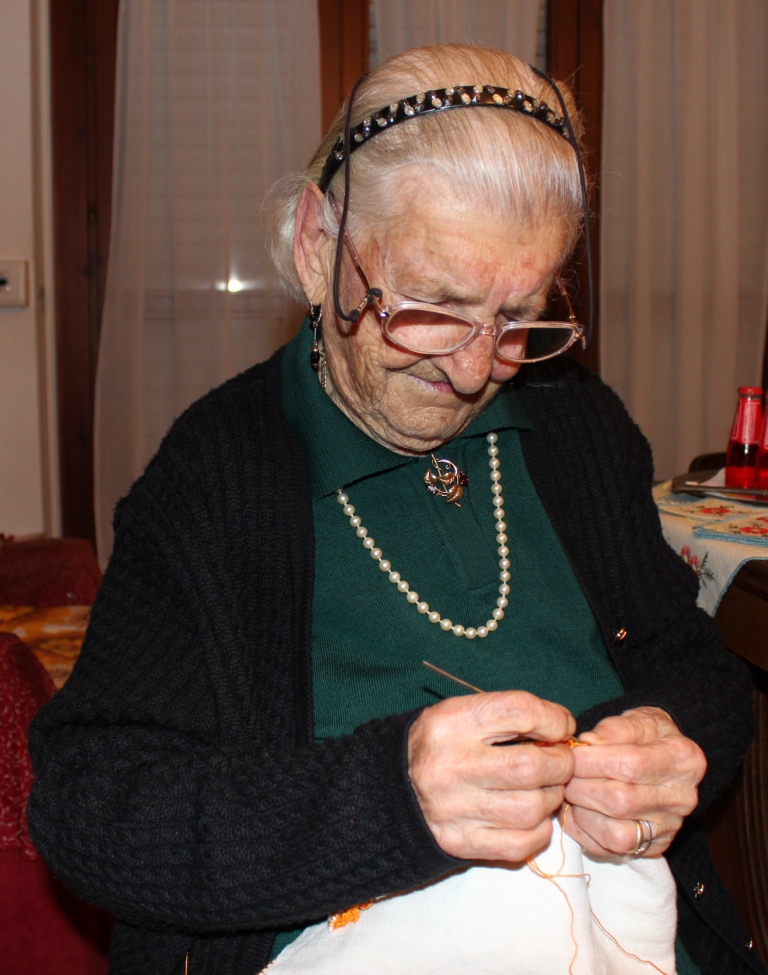 Durate l’intervista ci ha offerto una crostata buonissima all’albicocca fatta da lei e ci ha fatto vedere come tutt’oggi lavora all’uncinetto per poter contribuire ad una raccolta fondi per i paesi poveri dell’Africa.