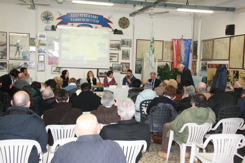 SAN BENEDETTO DEL TRONTO – Una ricca e bella giornata nell’Italia dei Capolavori è stata la festa di S. Giuseppe 2013 promossa dal Movimento Lavoratori di Azione Cattolica e accolta dall’Azione cattolica diocesana in collaborazione con la delegazione regionale delle Marche. La storica sede dell’Associazione Pescatori Sambenedettesi, la casa del pescatore ha accolto un denso percorso tra diverse storie, nella marineria sambenedettese ascoltato attentamente da una sala partecipata. Molte persone sono intervenute e sono giunti anche i gruppi del Mlac di Ancona, di Macerata per vivere insieme, collegati virtualmente a altre località italiana, questa giornata di festa nei luoghi di lavoro. Come Azione Cattolica e come comunità siamo chiamati a svegliare e risvegliare un’attenzione nuova e diversa al tema del lavoro, a quel lavoro che per la nostra città di San Benedetto ha reso possibile uno sviluppo e ha dato tanto: la pesca.