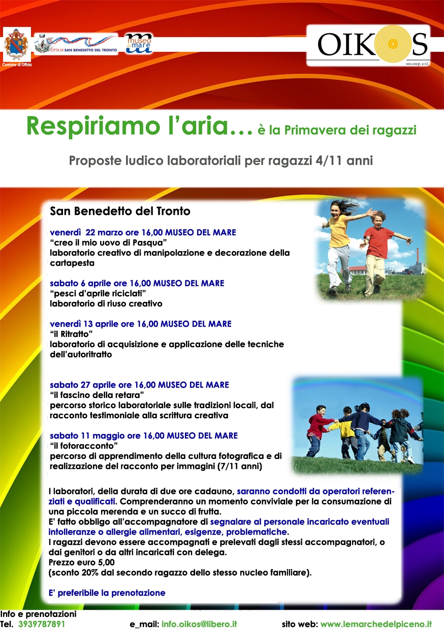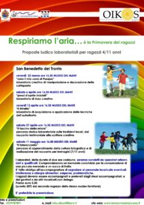 SAN BENEDETTO DEL TRONTO– “Respiriamo l’aria…è la Primavera dei ragazzi” è il nome del calendario di appuntamenti organizzati al Museo del Mare dalla cooperativa “Oikos” (che gestisce la struttura) con il patrocinio dell’Amministrazione comunale sambenedettese.