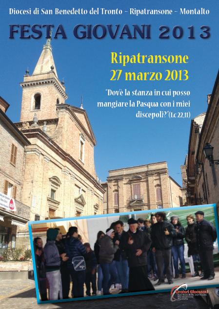 – I giovani divisi per vicarie ed animati dalle diverse realtà ecclesiali si incontrano in cinque diverse chiese di Ripatransone per un momento festoso di presentazione preparato da una realtà ecclesiale, qualche testimonianza ‘forte’ di alcuni giovani delle realtà ecclesiali, la preparazione dell’animazione di uno dei momenti della celebrazione col Vescovo:
