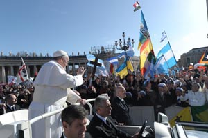 Chiamato “quasi dalla fine del mondo”. Nel messaggio del Consiglio episcopale permanente, i Vescovi italiani sottolineano quindi che, rifacendosi alle parole del Papa, “sull’esempio di San Giuseppe ci impegniamo a essere custodi di quanti sono affidati alla nostra responsabilità, specialmente della vita più debole e indifesa: con discrezione e umiltà, nel silenzio, con una presenza costante e una fedeltà totale”. Ribadiscono che “custodire è servire: amore crocifisso, che nasce dall’incontro con il Signore Gesù, dall’affidarsi e dal conformarsi sempre più al suo mistero pasquale, dal suo richiamo a essere suoi, a dimorare in Lui, fino a farsi sua presenza tra gli uomini del nostro tempo”. Esprimono riconoscenza “ai disegni della Provvidenza, che ha spinto i Cardinali ‘quasi alla fine del mondo’ per eleggere Colui che è chiamato a confermare i fratelli nella fede. Non a caso, – si dice poi nel messaggio – il Suo predecessore, Benedetto XVI, intervenendo alla V Conferenza Generale dell’episcopato latinoamericano, parlava della Sua terra come del ‘Continente della speranza’, ricco del ‘tesoro inestimabile’ e del ‘patrimonio più prezioso: la fede in Dio Amore, che in Cristo ha rivelato il suo volto’” (parole che Benedetto XVI aveva pronunciato al santuario dell’Aparecida, il 12 maggio 2007).