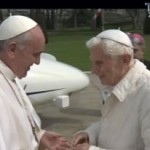 Un abbraccio caloroso ha suggellato l’incontro stamattina tra Francesco e Benedetto XVI, quando il primo è atterrato con l’elicottero nell’eliporto delle Ville pontificie di Castelgandolfo, accolto dal secondo. Un’immagine, ripresa dal Ctv, che sicuramente farà il giro del mondo, insieme con quella di Papa Bergoglio e Papa Raztinger che, inginocchiati insieme nello stesso banco, pregano nella cappella del Palazzo apostolico. Immagini uniche di un momento che resterà storico nella vita della Chiesa. A dieci giorni dalla sua elezione, infatti, Papa Francesco si è recato oggi a mezzogiorno a Castel Gandolfo per incontrare in privato Benedetto XVI e intrattenersi con lui a pranzo, per poi ritornare in Vaticano. Un programma semplice per un momento invece unico, preceduto in questi giorni da molte manifestazioni di affetto da parte del nuovo Pontefice nei riguardi del suo predecessore.