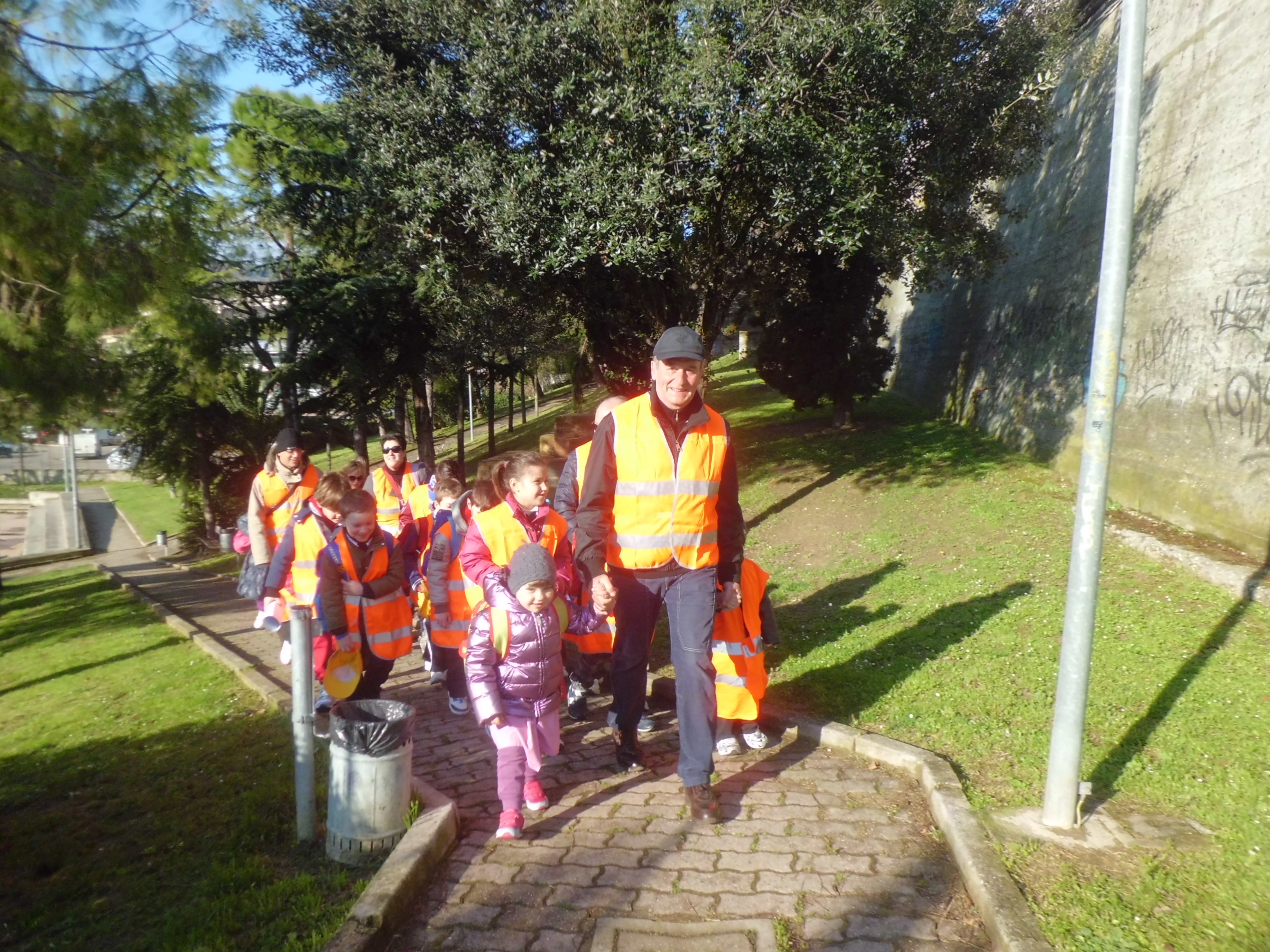 SAN BENEDETTO DEL TRONTO – Un’iniziativa in cui l’ISC Centro crede molto è senza dubbio quella del Piedibus. Così il 21 marzo, in una mattinata di sole, gli alunni della scuola primaria A. Marchegiani hanno voluto salutare l’arrivo della primavera facendo una bella passeggiata per recarsi a scuola. In tal modo ha ripreso” vita ”un progetto che, lo scorso anno scolastico, ha permesso a numerosi bambini e ai loro genitori di lasciare a casa l’auto ed andare a scuola a piedi. Questo è infatti il terzo anno consecutivo che vede la scuola primaria A. Marchegiani coinvolta in questa importante iniziativa con un percorso che permette agli alunni di raggiungere la scuola, camminando per le strade del quartiere. La sicurezza è garantita dalla presenza di genitori e volontari che accompagnano i piccoli pedoni lungo tutto il tragitto. Il principio è lo stesso dello scuolabus: un adulto che guida, un gruppo di bambini che segue ed un altro adulto che chiude la fila. La differenza consiste nel fatto che il vero “motore” di questo autobus umano sono i “piedi” dei bambini e degli accompagnatori che hanno aderito all’iniziativa. L’ISC Centro investe molto nel progetto del Piedibus perché con esso intende dare un piccolo, ma significativo contributo alla mobilità sostenibile. Infatti, oltre a favorire l’esercizio fisico quotidiano dei piccoli alunni e del sano movimento mattutino, il Piedibus rappresenta un vantaggio per l’intera comunità: promuovere l’andare a scuola a piedi è il modo migliore per rendere la nostra città più vivibile e meno inquinata. E quando si tratta di schierarsi dalla parte della difesa e della salvaguardia dell’ambiente, l’ISC Centro non si tira mai indietro. Allora non ci resta che dire “ Bentornato Piedibus! ”