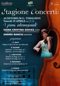 Ioana Cristina Goicea viene da una famiglia di musicisti. La madre, Cristina Anghelescu, è stata vincitrice del Concorso Sibelius ed è una famosa solista. Ioana Cristina ha iniziato a suonare il violino all’età di quattro anni con il nonno, il violinista Aurelian Anghelescu, come insegnante. Vincitrice di numerosi Concorsi, Cristina ha suonato ccome solista con importanti orchestre quali la “George Enescu” Philharmonic di Bucarest, e con numerose Orchestre in Italia, Cina e Moldavia. Svolge una intensa attività concertistica ed è accompagnata per il concerto a San Benedetto del Tronto, dal pianista ANDREI BANCIU, connazionale, a suo volta vincitore di numerosi Concorsi.