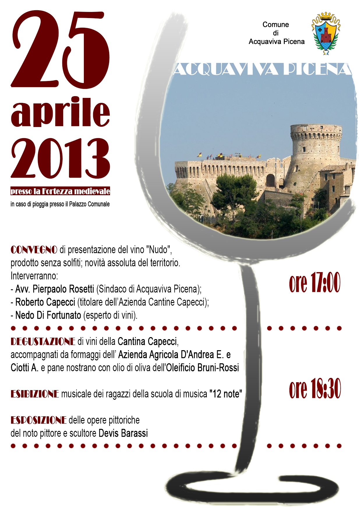 ACQUAVIVA PICENA – Luogo ricco di storia, cultura ed arte, sarà lo scenario suggestivo in cui si svolgerà, il 25 aprile alle ore 17:00 presso la Fortezza medievale (in caso di pioggia presso il Palazzo Chiappini), il convegno volto a descrivere questo particolare tipo di vino, prodotto per la prima volta sul territorio dalle Cantine Capecci.