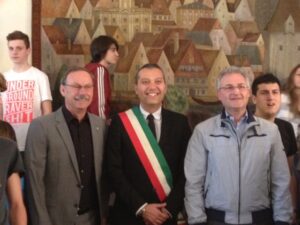 Il gemellaggio con la municipalità di Steyr è stato rinnovato nella giornata del 26 aprile con il tradizionale scambio di doni tra l’assessore Marco Curzi e il sindaco austriaco Gerald Hackl. Successivamente i ragazzi italiani sono stati accompagnati in una visita alle scuole austriache (istituto commerciale, alberghiero e liceo linguistico) e alla città di Steyr.