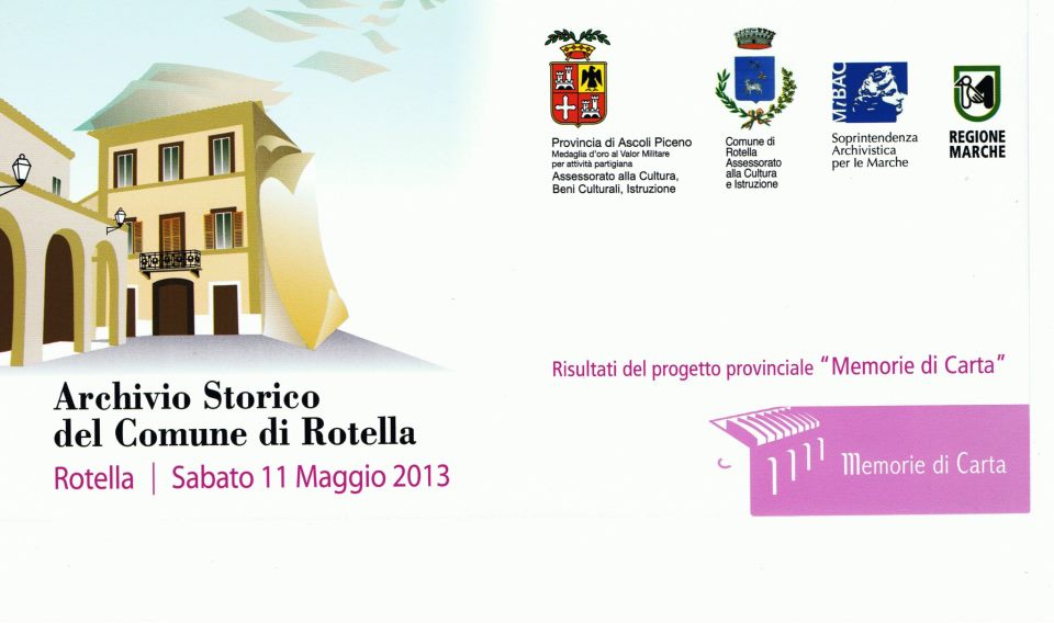 ROTELLA – Prosegue con un’altra tappa nell’entroterra Piceno il progetto “Memorie di Carta”, promosso dalla Provincia in sinergia con la Soprintendenza archivistica per le Marche e la Regione. Tornerà infatti fruibile l’archivio comunale di Rotella, altra cittadina ubicata alle pendici del Monte Ascensione, protagonista di questo appuntamento dell’iniziativa.