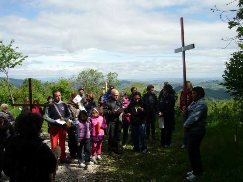 Partiamo, pieni di Grazia (il Santissimo è con noi!!!) e ad ogni stazione, il lettore di turno, alla fine del suo servizio, accende un lumino e lo sostituisce alla croce piantata in terra e che porterà fino alla vetta: un gesto semplice che sta a significare come la Resurrezione di Cristo, abbia trasformato il dolore della passione in luce per la salvezza del mondo.