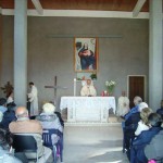 Un po’ prima delle 16, arriva il nostro Vescovo, Mons. Gervasio Gestori, e con lui, arriva anche il sole, che fino a quel momento non si era ancora fatto vedere. Il paesaggio che si apre di fronte alla chiesetta è meraviglioso e rinfranca l’anima ed è con questa gioia che ci apprestiamo a celebrare la Santa Messa.