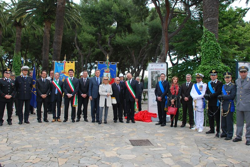 SAN BENEDETTO DEL TRONTO – Alla presenza del mecenate dr. Giuseppe Naponiello, del sindaco Giovanni Gaspari e delle massime autorità civili e militari, sono stati scoperti nella mattinata di domenica 2 giugno i cinque totem illustrativi dell’azione di lotta al “punteruolo rosso” che si svolgerà sulle palme del centro cittadino grazie al contributo offerto dall’imprenditore e Gran Pavese Rossoblù.