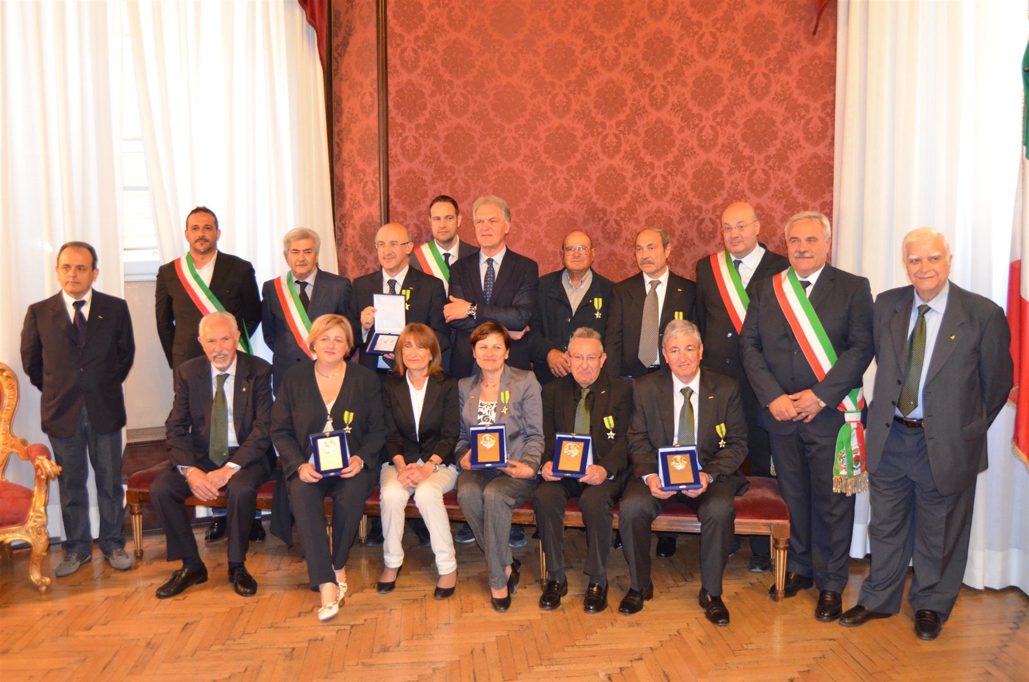 PROVINCIA – Otto nuovi maestri del lavoro del Piceno, con a fianco Sindaci ed Amministratori simbolicamente in fascia tricolore, sono stati premiati stamani nello splendido salone “De Carolis” di Palazzo San Filippo, messo gentilmente a disposizione dal Prefetto di Ascoli Piceno dott.sa Graziella Patrizi per onorare al meglio quanti, con abnegazione e competenza, hanno lavorato al servizio della comunità locale. Una cerimonia molto apprezzata, organizzata dall’Amministrazione Provinciale ed unica a livello nazionale nel panorama delle analoghe iniziative organizzate dalla Federazione Maestri del Lavoro essendo giunta ben alla 36° esima edizione.