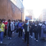 Al termine dell’udienza i fedeli della parrocchia di San Niccolò si sono spostati al seguito del loro parroco, don Alfredo, per Castel Sant’Angelo dove hanno pranzato all’ombra e si sono riposati un po’. Una volta ripreso il cammino il parroco ha guidato i fedeli per un tour attraverso le vie di Roma fino ad arrivare a via del Corso presso la chiesa dei frati Agostiniani, dove durante la celebrazione don Alfredo ha invitato i parrocchiani a “Cercare i segni della fede”in quello che facciamo Quanta fede ho messo nel fare i miei servizi in chiesa? Con quanta comunione? Dio è più forte di me e delle mie debolezze, io vado avanti perché Lui è forte, è su questa forza che baso la mia fede. Siamo nella Chiesa che custodisce il Popolo, che lascia un segno luminoso sulla terra”. Stanchi ma felici per aver partecipato a questa bellissima giornata i parrocchiani si sono avviati verso gli autobus per riprendere la strada di casa con una marcia in più, quella che ci ha dato il Papa con molta semplicità: Dio è più forte di ogni male, delle nostre debolezze e vuole accoglierci nel suo Popolo!