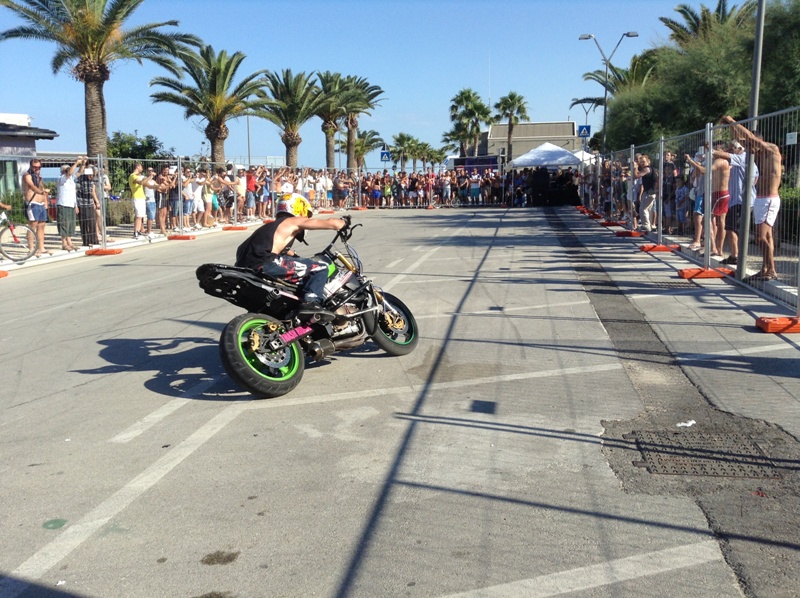 Domenica 23 giugno la giornata è stata piena di appuntamenti che hanno attirato appassionati e curiosi di tutte le età, sia uomini che donne. Innanzitutto già dal mattino i motociclisti si sono ritrovati sul lungomare per assistere all’esibizione dello stunt man e delle sue evoluzioni.