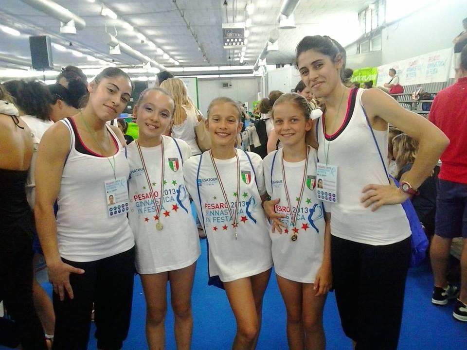 SPORT – Dal 20 al 29 giugno 2013 alla Festa della Ginnastica di Pesaro le piccole atlete della Asd World Sporting Accademy allenate da Sarah Christel e Joelle Eliabeth Mattoni hanno partecipato con successo alle competizioni conseguendo degli ottimi risultati sia nelle gare individuali che di squadra.Precisando che in questa disciplina non esiste una reale classifica, bensì una suddivisione in fasce di merito per dare modo a tutte le Società, dalla prima all’ultima, di essere premiate indistintamente, gratificando questi bambini per tutto l’impegno che ci mettono in campo e in allenamento così come giustamente meritano.