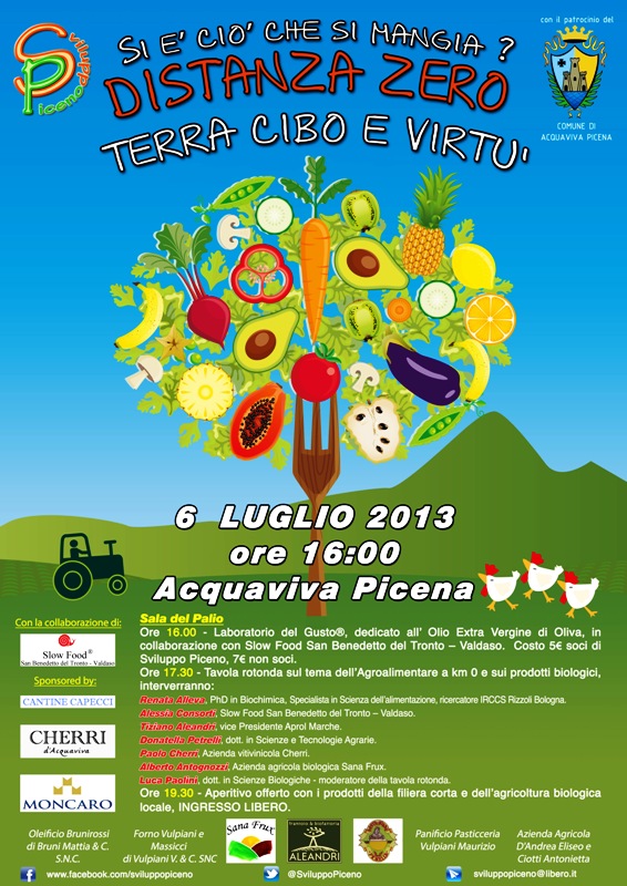 ACQUAVIVA PICENA – “Si è ciò che si mangia? Distanza zero, terra cibo e virtù” saranno questi gli argomenti principali dell’evento, organizzato dall’associazione Sviluppo PICENO, che si terrà SABATO 6 LUGLIO nella suggestiva cornice medioevale di Acquaviva Picena, comune dell’entroterra Piceno, distante solo 5 minuti dal luogo simbolo della Riviera della Palme, San Benedetto del Tronto.