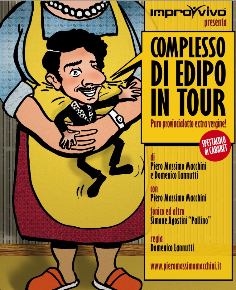 CUPRA MARITTIMA – Ridere e di gusto. Questo l’imperativo che si prefiggono gli organizzatori di Cupra teatro d’estate per la terza serata della IV edizione della kermesse. Dopo una commedia e un musical che hanno deliziato la platea che ha riempito la centrale piazza Possenti, ora il pubblico cuprense potrà godere, ancora gratuitamente, di un one man show. A salire sul palco sarà Piero Massimo Macchini, attore, fantasista e comico fermano che delizierà il pubblico con la sua creazione “Complesso di Edipo in tour, puro provincialotto extra vergine”. Si tratta di uno spettacolo di cabaret ideato dallo stesso attore e da Domenico Lanutti che ne firma la regia.  Già da due anni in tour per lo stivale, questo spettacolo ha inanellato una serie di riconoscimenti importanti. Ha vinto il festival della Comicità di Eboli “Cabareboli 2011”, e nel 2012 è stato registrato e mandato in onda dalla trasmissione comica “Ottovolante” su Radio Rai 2. Si tratta sostanzialmente di voler raccontare la vita di oggi di un giovane adulto fermano ridendoci su con i suoi alti ma soprattutto con i suoi bassi.