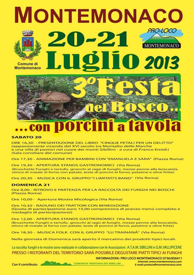 MONTEMONACO – Il 20 e il 21 luglio torna a Montemonaco la terza edizione della “Festa del bosco”
