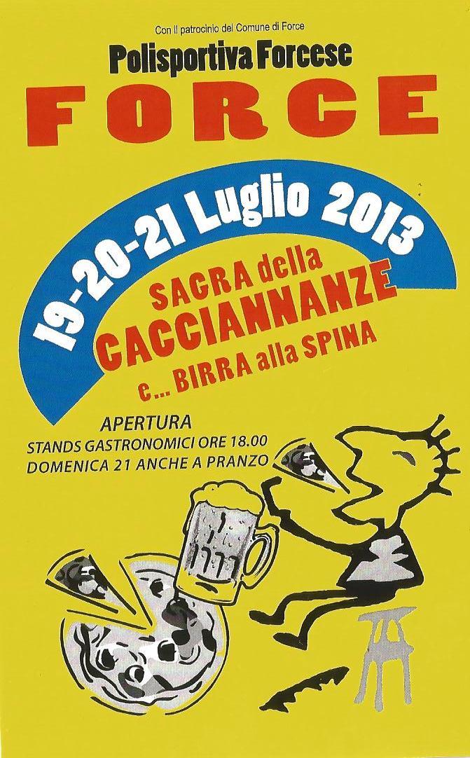 FORCE – La polisportiva Forcese, patrocinata dal Comune, organizza il 19-20-21 luglio 2013 la sagra della cacciannanze e birra alla spina.
