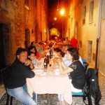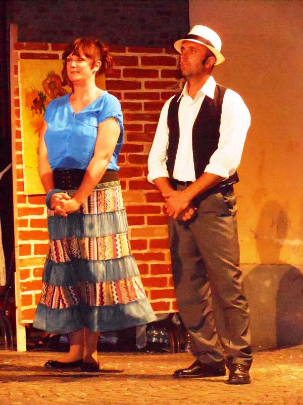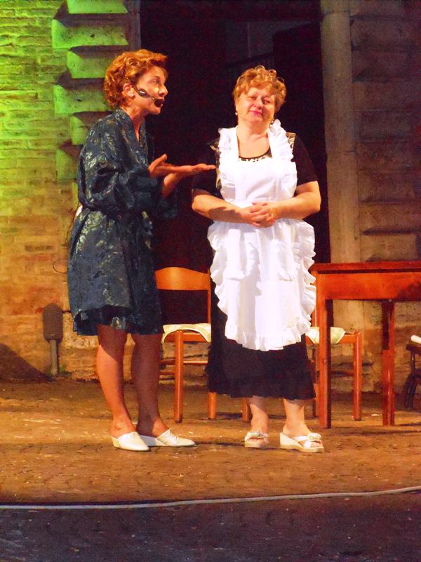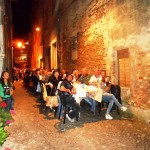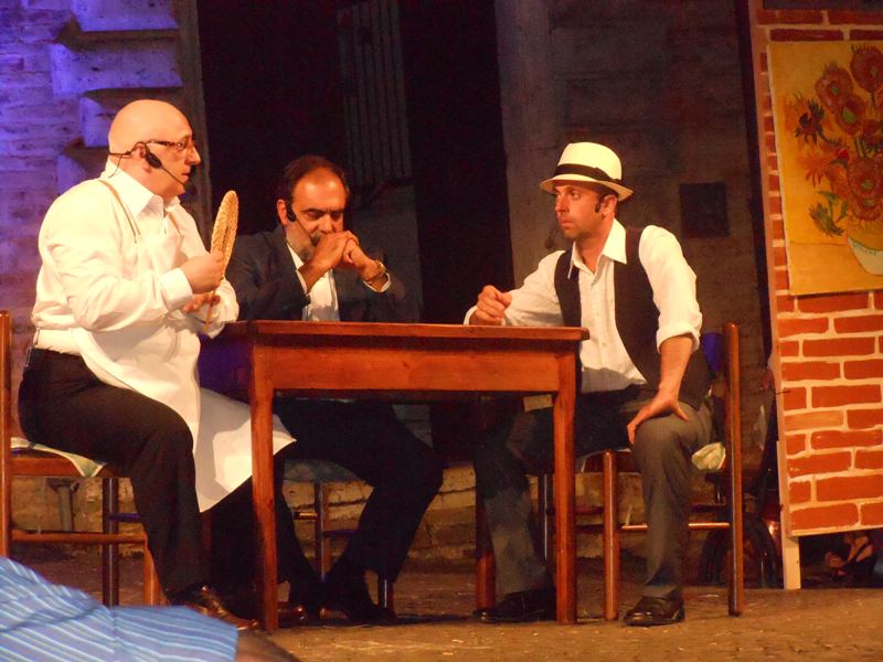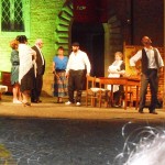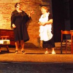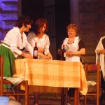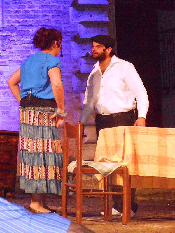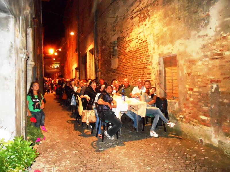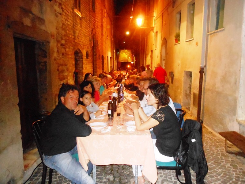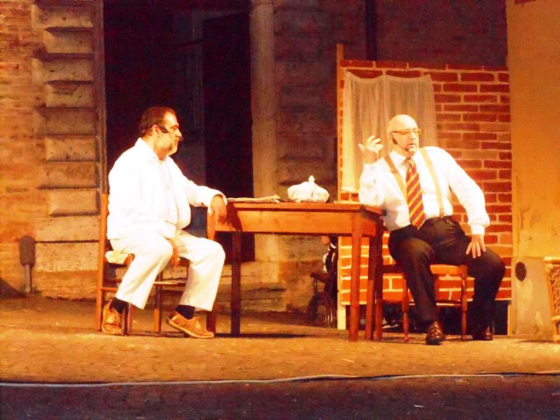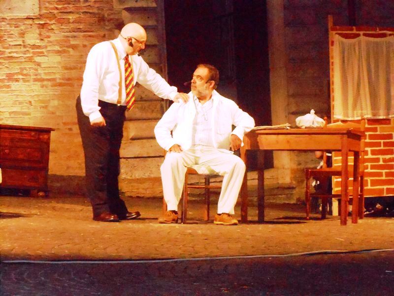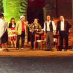 ACQUAVIVA PICENA – Nella serata di venerdì 19 luglio, nella piazzetta del borgo Colle di Acquaviva Picena, la compagnia La Zicagna ha dato prova di abilità e disinvoltura nella messa in scena della commedia di Eduardo Scarpetta dal titolo “Tre pecore viziose”, durante la cena organizzata dall’associazione Laboratorio Terraviva. Lo spettacolo è stato trasmesso in diretta nelle vie della zona del Colle lungo le quali i molti spettatori presenti erano seduti intorno ai tavoli per cenare insieme gustando piatti semplici della tradizione popolare.
