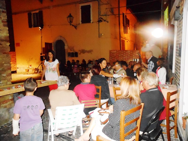 Durante il discorso di apertura, il presidente dell’associazione Terraviva, Filippo Gaetani, ha ringraziato tutti coloro che hanno collaborato alla realizzazione della serata, alcuni tra i quali l’associazione GS Acquaviva, l’associazione Sponsalia, le cantine Moncaro e Cherri e tutti i collaboratori che si sono messi a disposizione per servire la cena;  tra un boccone e l’altro la rappresentazione teatrale è stata seguita con molta attenzione e grandi risate nei momenti clou della trama.