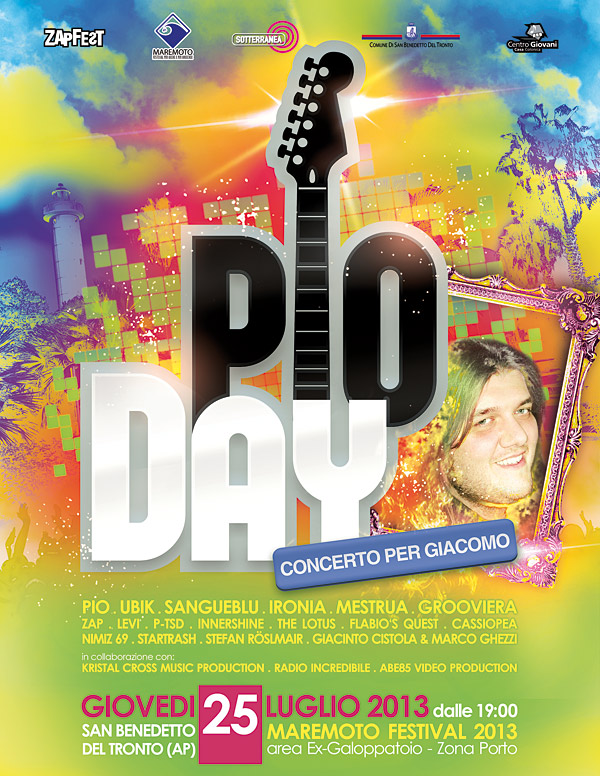 SAN BENEDETTO DEL TRONTO– Un giorno di rock ad alto voltaggio e parole per celebrare la vita ed il lavoro di un ragazzo unico, uno di quelli in grado di lasciare un segno indelebile nel cuore di tutti, Giacomo “Pioweb” Antonini. Un giorno per guardare oltre la figura di coordinatore del Centro Giovani Casa Colonica e riscoprire l’artista Pioweb.