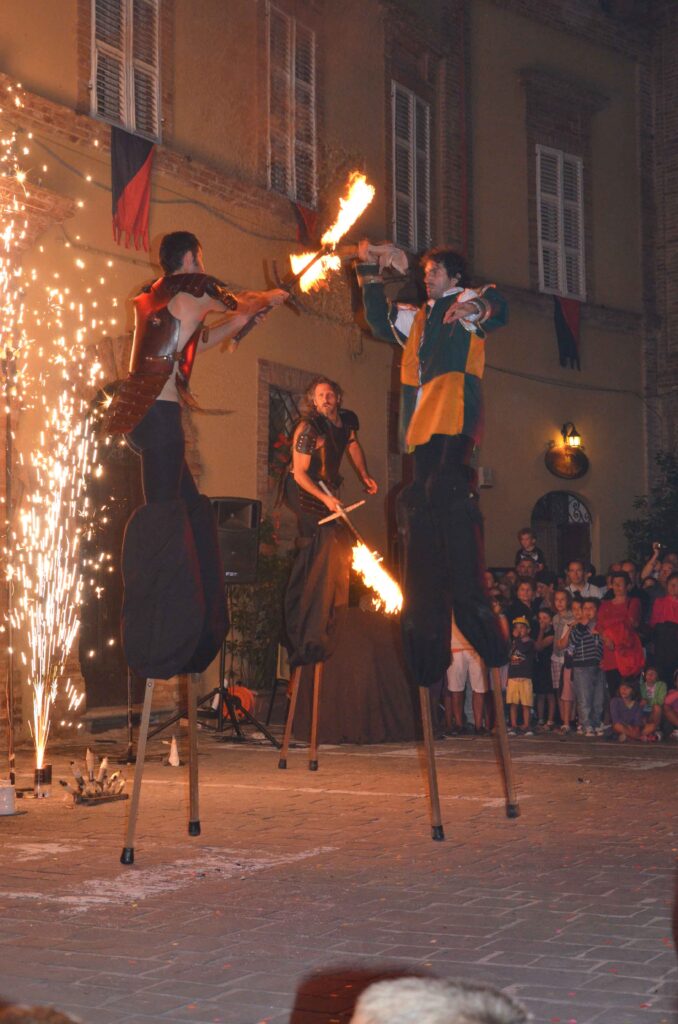 Per questa edizione straordinaria, sabato 2 e domenica 3 agosto, a partire dalle ore 21:30 e fino a notte fonda, al Centro Storico allestito con festoni, alabarde, fiaccole e bandiere, due giorni di festa medievale “Al Castellum Martis”, per far rivivere, tra storia e leggenda, in un’atmosfera quasi magica, lo scorrere del tempo di un’altra epoca, i suoi riti, le note arcaiche degli anni di Enrico da Cossignano, potente abate di Farfa dal 1229 al 1234 o la vita della bella e pudica Donna Orgilla e diletta moglie di Ser Balduzio, signore del Castello di Cossignano, comune in origine denominato Castellum Martis (Castello di Marte), come attestato in un documento del 1039, forse per l’esistenza “di un sacello di Marte” in cui si venerava il dio della guerra, resosi autonomo alla fine del XIII secolo per concessione del papa francescano e piceno Niccolò IV.