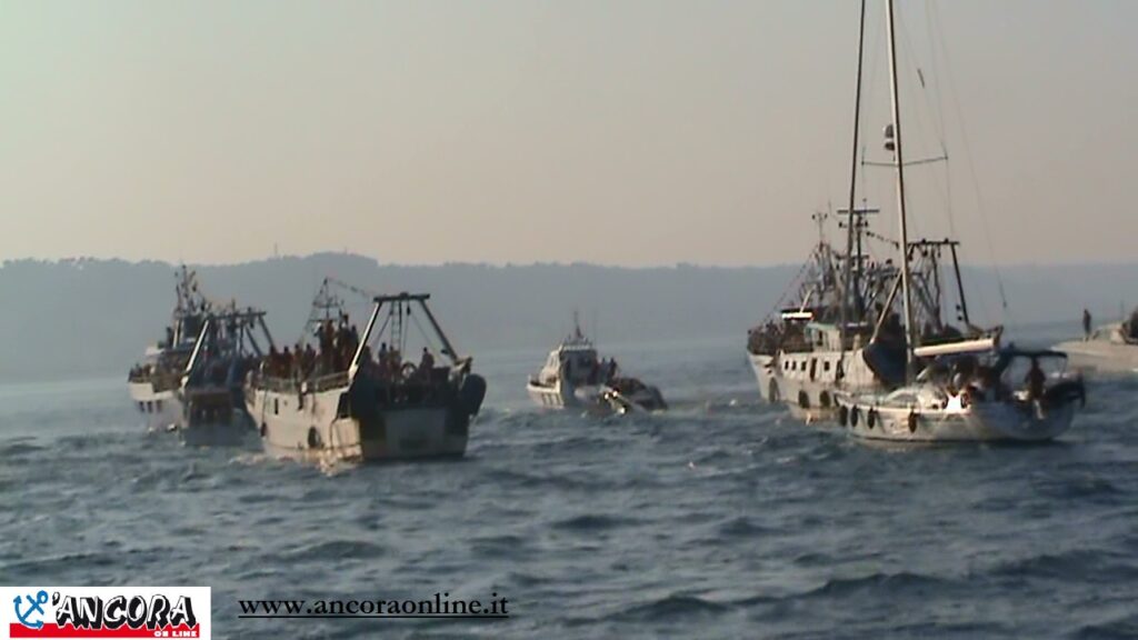 Come detto, la Festa della Madonna della Marina comprende un insieme di manifestazioni civili e religiose. Siamo andati a bordo del motopeschereccio Federico Padre, affollato da sanbenedettesi e turisti, così come altri motopescherecci della marineria locale. L’icona della Madonna della Marina è sorvegliata da due marinai della Guardia Costiera, a bordo del peschereccio Umberto Padre della Famiglia Merlini, che ha ospitato il nostro Vescovo e altre autorità civili e religiose quali il vicario generale don Romualdo Scarponi, il Parroco della basilica Cattedrale Don Armando Moriconi e il vicario parrocchiale Don Luca Rammella, il Presidente della Provincia Piero Celani e il Sindaco di San Benedetto del Tronto Giovanni Gaspari.