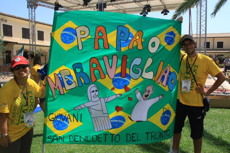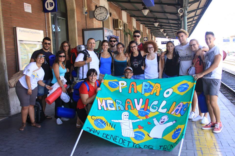 Siamo stati circa 500 ragazzi da tutte le Marche, e non solo, radunati al Centro Giovanni Paolo II per condividere insieme i momenti salienti della Giornata Mondiale della Gioventù tenutasi a Rio de Janeiro. Della nostra diocesi hanno partecipato circa 35 ragazzi provenienti dalla parrocchia della Madonna del Suffragio, di san Pio X, di Cristo Re  e dal gruppo giovani dell’UNITALSI. Al nostro arrivo siamo stati accolti da un gruppo di animazione ed intrattenimento.  Abbiamo avuto anche la possibilità di partecipare all’esibizione di un gruppo rock italiano “ I Controtempo” che con le loro canzoni hanno riflettuto sui temi della vita, del nostro futuro, dei nostri progetti e dei nostri fallimenti che non devono impedire la nostra felicità, invitandoci a fare un brindisi a quello che si ha (come afferma la loro canzone “Un brindisi a quello che hai”).
