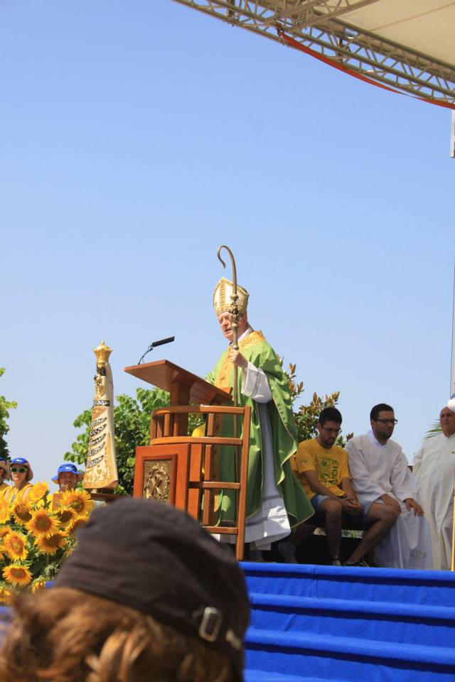 “Cari giovani, nel ritornare alle vostre case non abbiate paura di essere generosi con Cristo, di testimoniare il suo Vangelo. Nella prima Lettura quando Dio invia il profeta Geremia, gli dona il potere di «sradicare e demolire, distruggere e abbattere, edificare e piantare» (Ger 1,10). Anche per voi è così. Portare il Vangelo è portare la forza di Dio per sradicare e demolire il male e la violenza; per distruggere e abbattere le barriere dell’egoismo, dell’intolleranza e dell’odio; per edificare un mondo nuovo. Cari giovani: Gesù Cristo conta su di voi! La Chiesa conta su di voi! Il Papa conta su di voi! Maria, Madre di Gesù e Madre nostra, vi accompagni sempre con la sua tenerezza: <<Andate e fate discepoli tutti i popoli>>. Amen.”