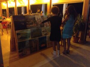 CUPRA MARITTIMA – Una serata tra pittura e specialità culinarie quella organizzata da Pro Loco e chalet Gabbiano di Cupra Marittima. Mercoledì 31 luglio infatti si è svolta, presso la struttura balneare, la cena “Arte e Cucina”, dedicata all’estemporanea di pittura “La Vongola d’Oro”, che si è svolta dal 24 al 28 giugno 2013 nell’ambito del “Premio Cupra”. Durante la cena sono stati esposti dunque i quadri realizzati durante il concorso, i presenti hanno potuto così ammirare e apprezzare i quadri, e chi ha voluto ha potuto anche acquistarli, mentre gustavano un menù realizzato appositamente per l’occasione. Ecco i piatti: carpaccio di polipo con crema di aceto balsamico e valeriana, cozze alla marinara con pomodoro e basilico, spaghetti alla vongola d’oro, bomboletti e bulli, frittura di calamari e patatine fritte. Dato il successo dell’idea gli organizzatori ripeteranno l’iniziativa anche per i prossimi mesi, con l’intenzione di dare continuità a manifestazioni culturali fondendole a 360 gradi con il turismo locale.