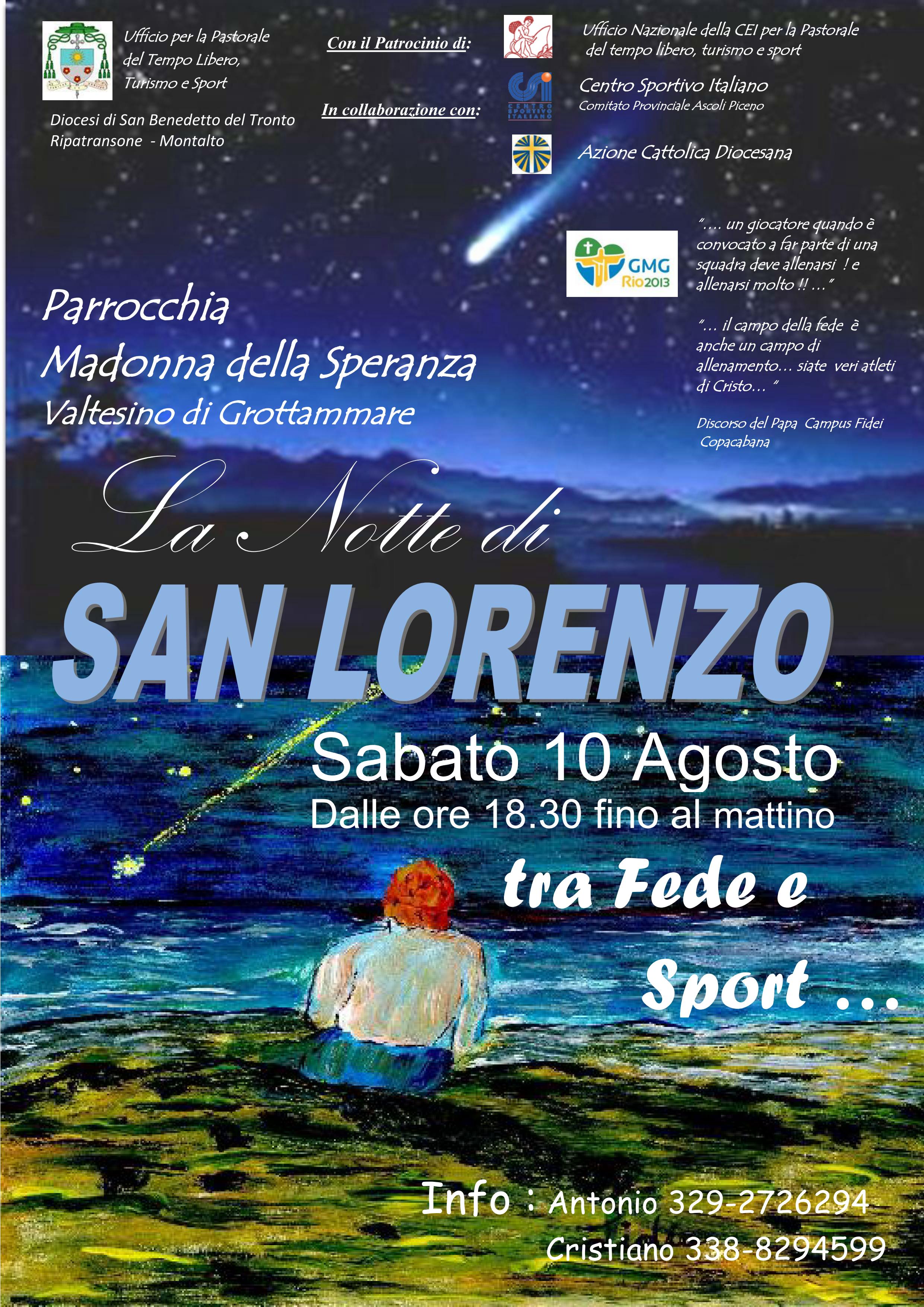DIOCESI – Dal Brasile il Papa dice: “fate chiasso, fate casino, smuovete la Chiesa”. La frase, mi è sembra fatta apposta per affiancare un’ iniziativa che in comunione all’ufficio del tempo libero turismo e sport della Diocesi, alla parrocchia della Madonna della Speranza e al Csi provinciale, si sta preparando per il 10 di agosto in occasione della notte di San Lorenzo.