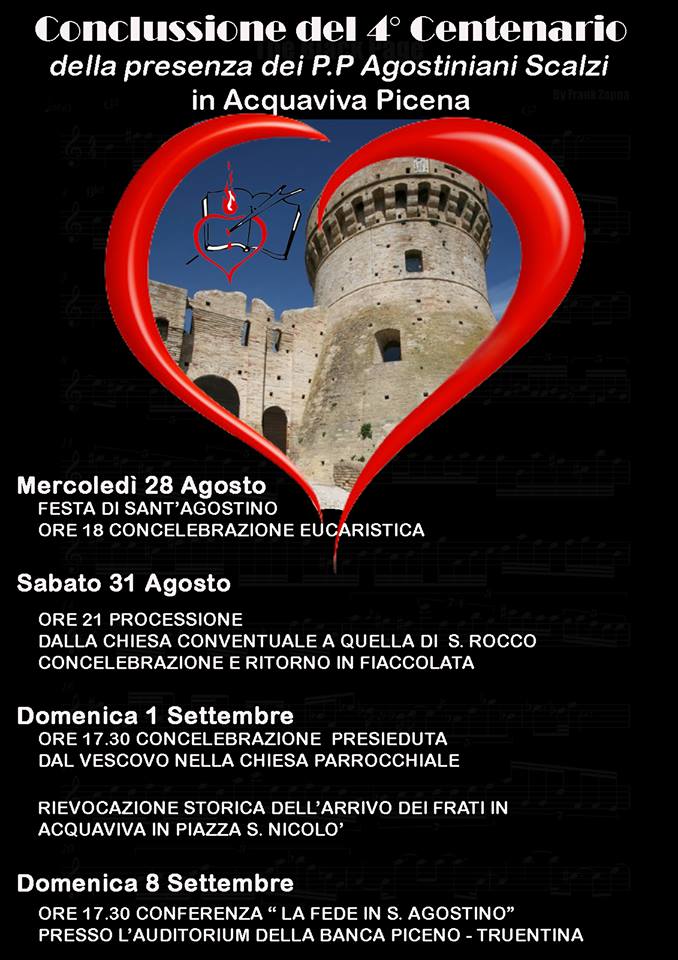 Come ultimo appuntamento, domenica 8 settembre si terrà presso l’Auditorium della Banca Picena Truentina una conferenza dal titolo “La fede in S.Agostino”.