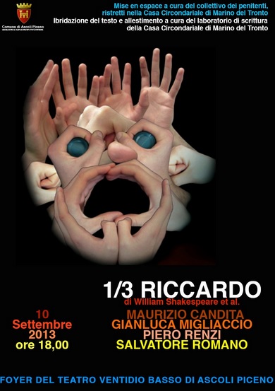 “Non si tratta di teatro – spiega Claudio Pizzingrilli, che ha curato la preparazione dei ragazzi – ma di una intensificazione del Riccardo III seguendo le indicazioni di Carmelo Bene e di Gilles Deleuze, inevitabilmente di Grotowski, e ibridando il testo con inserzioni beckettiane, buchneriane, nonché nostre proprie: cioè abbiamo adattato il testo ai dialettalismi, alle proprietà dei performer. L’idea di mettere-in-spazio – non in scena – il Riccardo III, facendone un terzo Riccardo, cioè un ulteriore Riccardo III, è nata dall’esame della condizione carceraria, dalla considerazione del concetto di colpa, dall’osservazione degli stati di coscienza, della coscienza stessa, dall’analisi della nozione del nulla in quanto contigua all’esistenza. Sul piano dell’interpretazione, si è lavorato sulla memoria, in primo luogo, sulla relazione parola/gesto, ciò ha comportato un lavoro di sottrazione delle cattive abitudini espressive che si contraggono nella vita quotidiana”.
